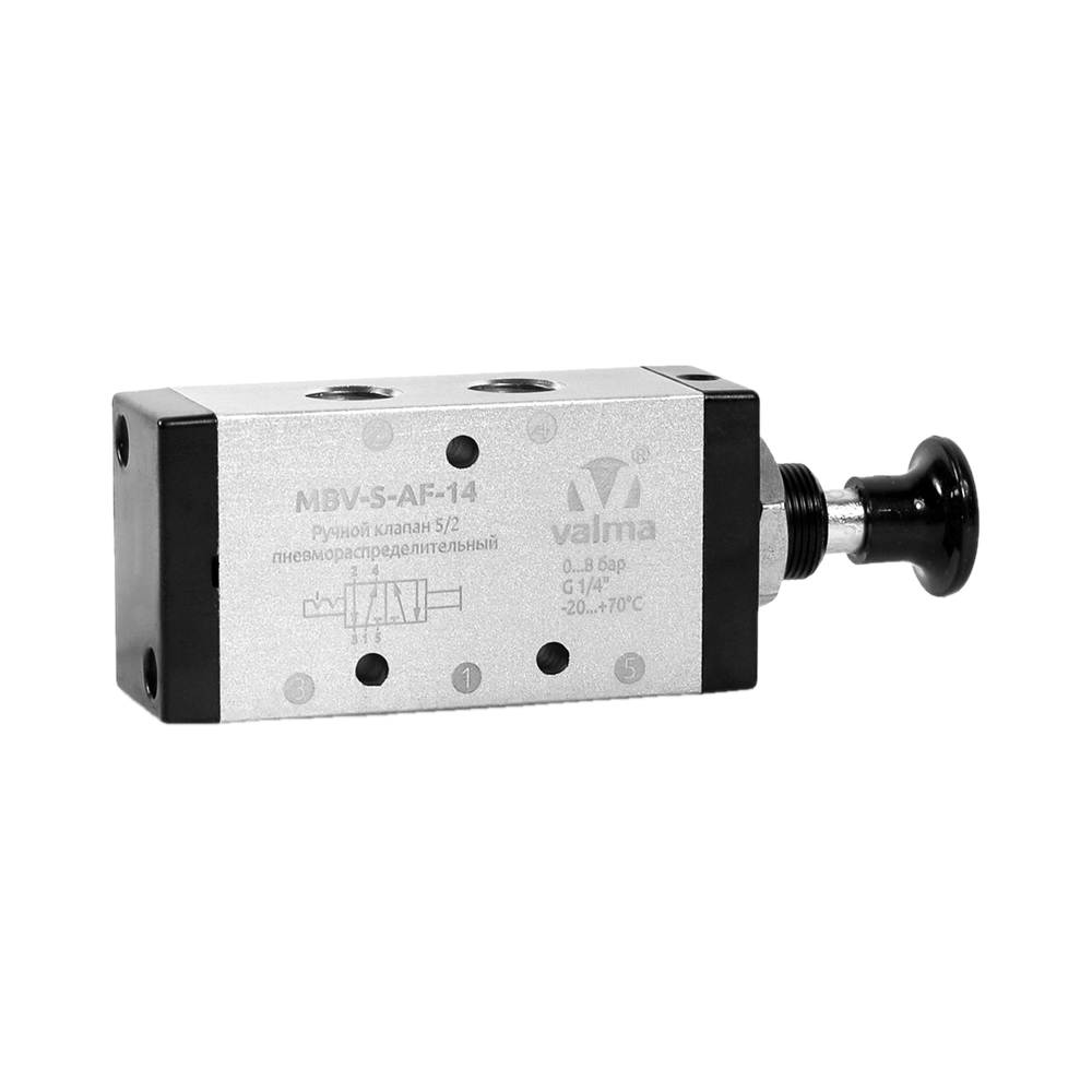 MBV-S-AF-12 Ручной пневмораспределитель (кнопка), 5/2, G1/2", с фиксацией